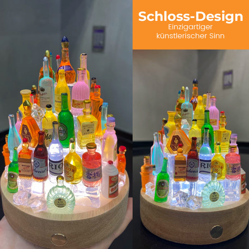 Slottdesignen i kombinasjon med vinflasken skaper et kunstverk som ikke bare gir lys, men også en romantisk atmosfære. -