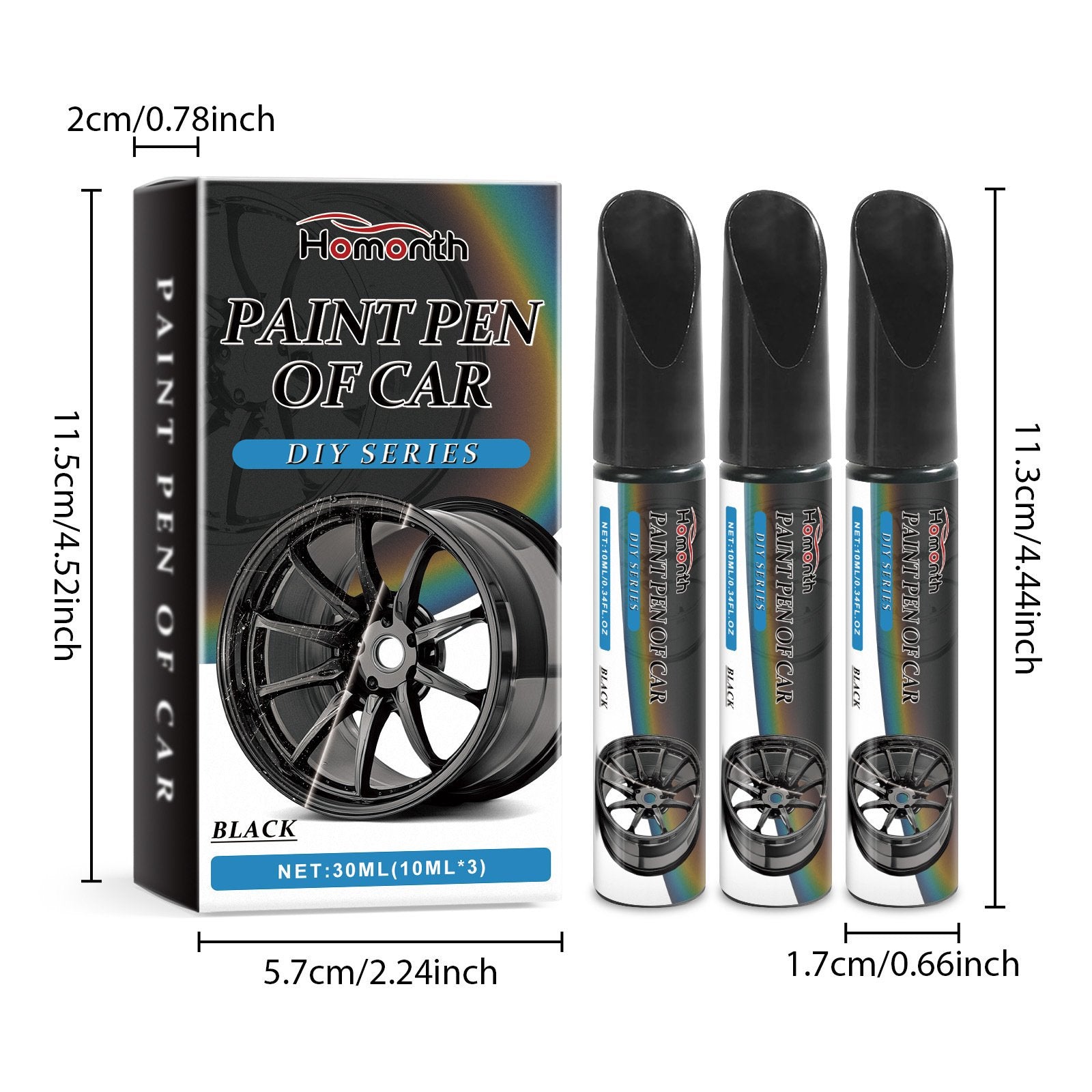 ●Produkttype: svart penn for reparasjon av riper på bilfelger