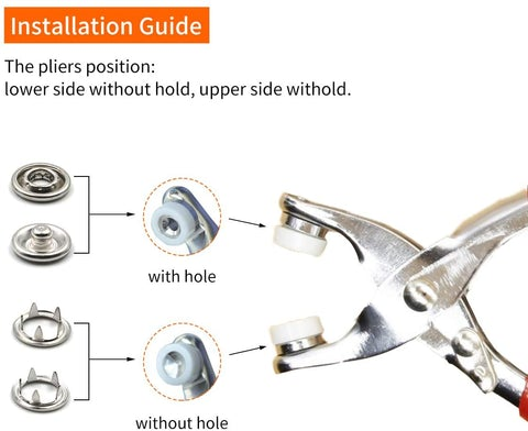 - Plasser de hule piggringene på den ikke-perforerte undersiden av tangen og hann- og hunnklippene på den perforerte oversiden av tangen.
